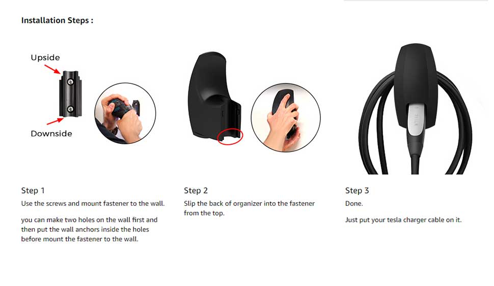 Guglielmo Bitossi      Looks great in the garage. Easy to mount. Definitely you need something like this to keep the charging cord organized.