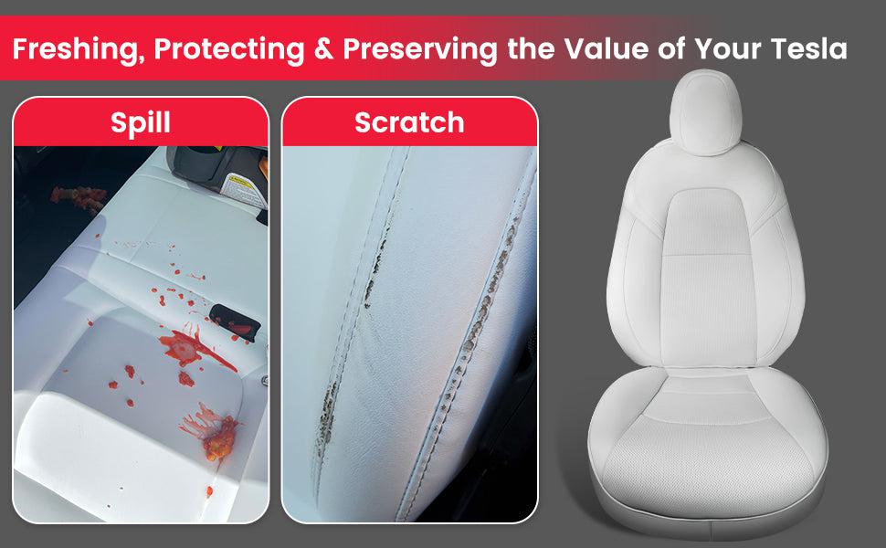 If you want to avoid irreversible damage caused by dirt, liquid stain, grime, abrasion, pets, or kids to your Tesla Model Y Model 3's seats, TAPTES front seat covers for Tesla Model Y Model 3 will meet your needs perfectly. Unlike universal seat covers, TAPTES seat covers are custom-designed and handcrafted to completely cover and protect your Tesla seats.